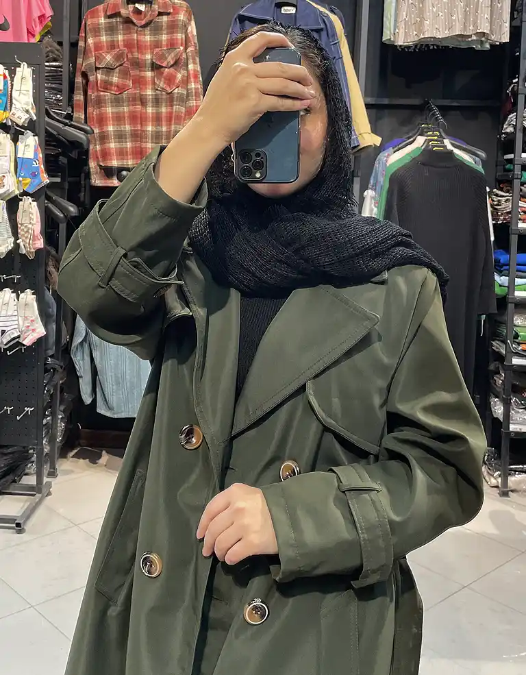 ترنچ کت بلند استر دار یقه انگلیسی
