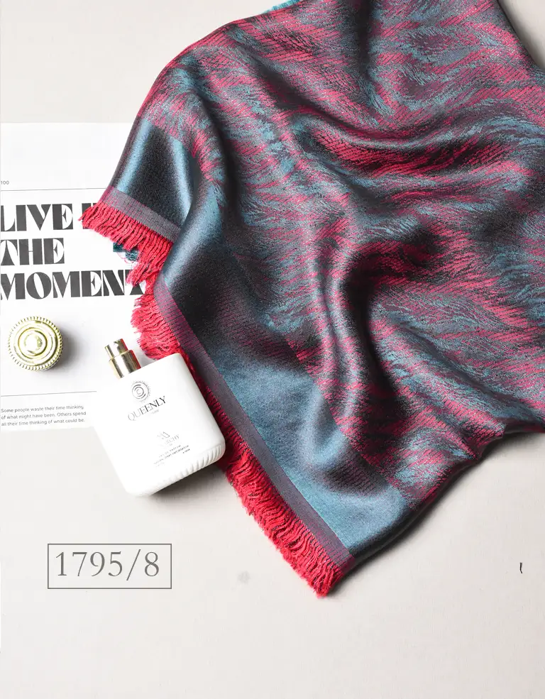 روسری ابریشم ژاکارد دورو طرح پر کد 1795