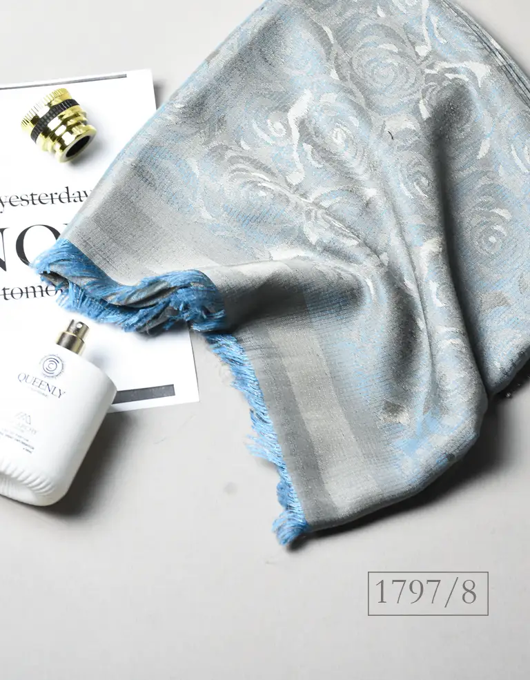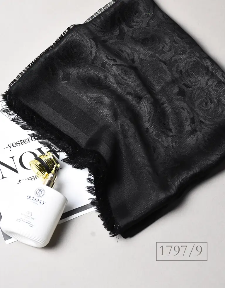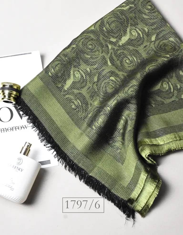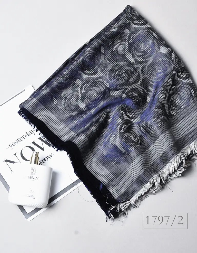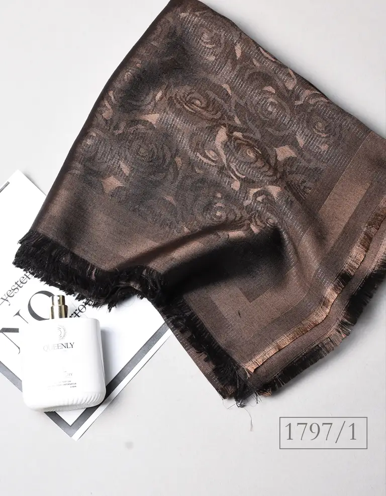 روسری ابریشم ژاکارد قواره 120طرح گل رز کد 1797