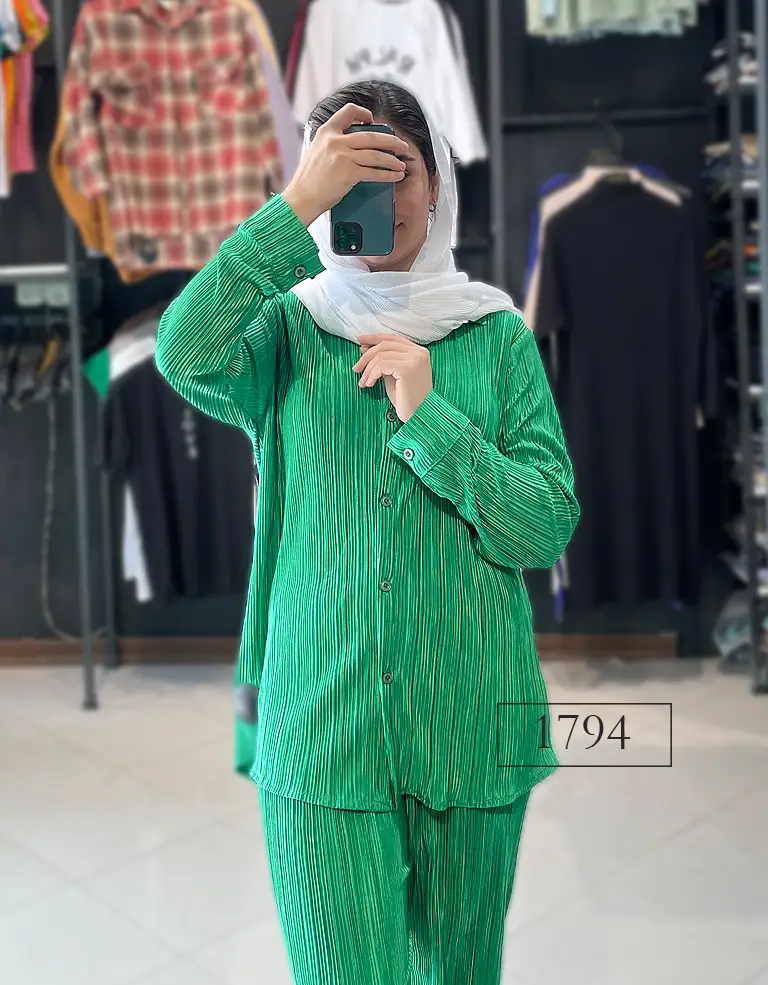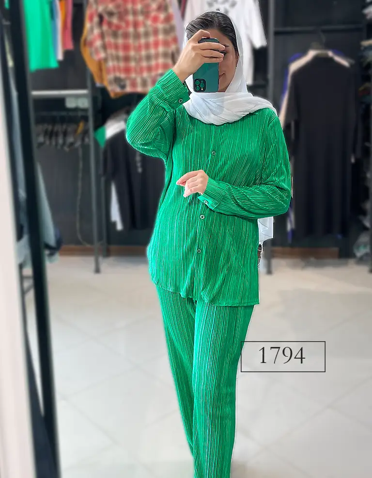 ست ساتن شومیز شلوار پلیسه کد 1794